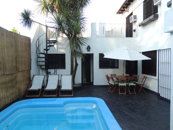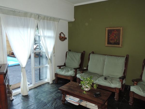 En la planta baja cuenta con living comedor con pisos tarugados, cocina comedor, estar diario, baño, escritorio o consultorio con baño, cochera para dos autos, parrilla, lavadero, galpón o dependencia de servicio, y patio con pileta de fibra con filtro.