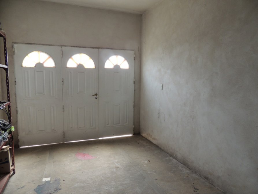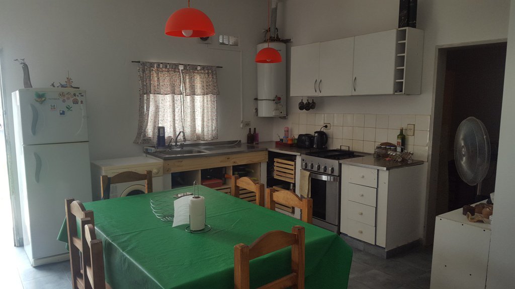 Planta baja: living, cocina comedor, baño, dos dormitorios (uno con baño en suite), cochera, parque. En el fondo se haya edificada un departamento con dos habitaciones de estado regular.